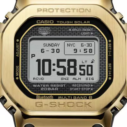 The time mode display layout carries on the look of the first-ever G-SHOCK, with traditional styling taking on advanced functionality. Download the CASIO WATCHES app to pair with your smartphone via Bluetooth®. With Multiband 6, Tough Solar charging system, and high-brightness LED light, you have complete practical utility at your fingertips.