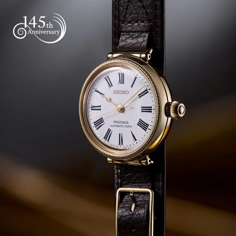 This limited edition timepiece is one of a small collection to commemorate the 145th Anniversary of the beginnings of Seiko as a Tokyo clock and watch repair shop in 1881.